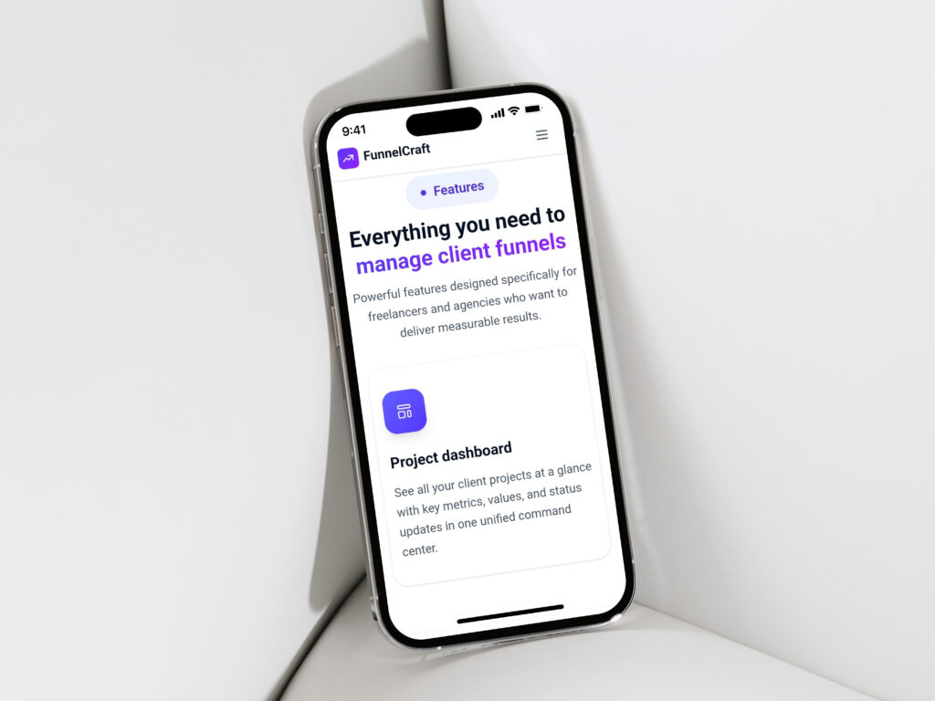 The FunnelCraft project was developed as an internal SaaS concept targeting freelancers, agencies, and consultants managing multiple client campaigns. The platform was designed with scalability and usability in mind, featuring: